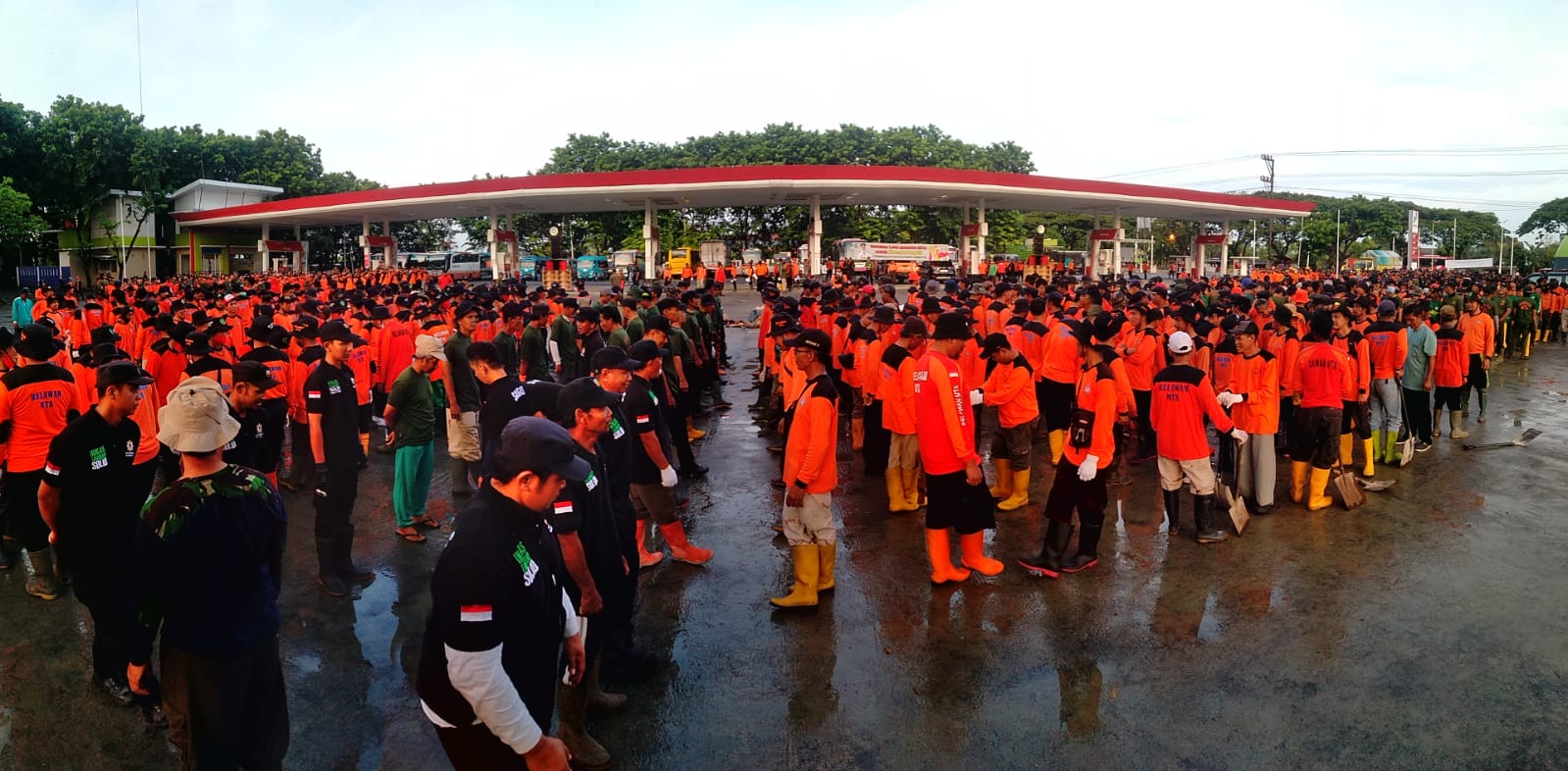 DEMAK, JAWA TENGAH – Majlis Tafsir Al-Qur’an menerjunkan lebih dari seribu relawan untuk melakukan kegiatan pembersihan pasca banjir dalam Gerakan 1000 Relawan MTA untuk Demak Bangkit. Kegiatan ini dimulai dengan apel pembukaan di SPBU Cangkring, Kecamatan Karanganyar, Kabupaten Demak, Kamis (22/2/2024).