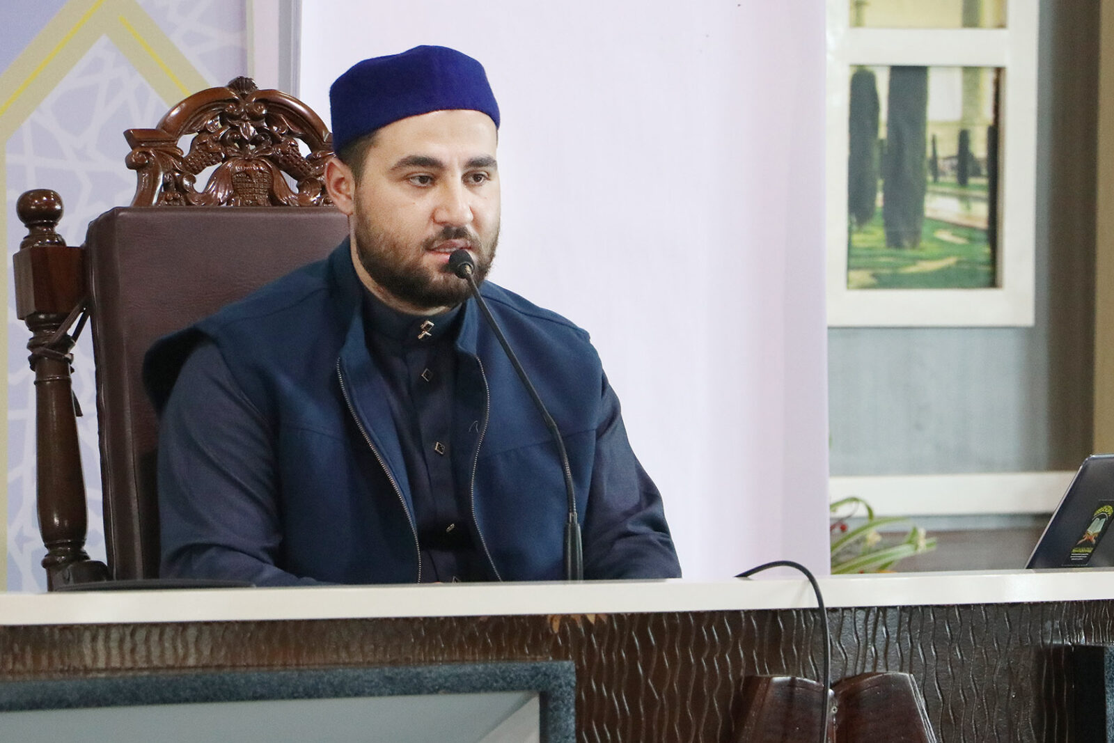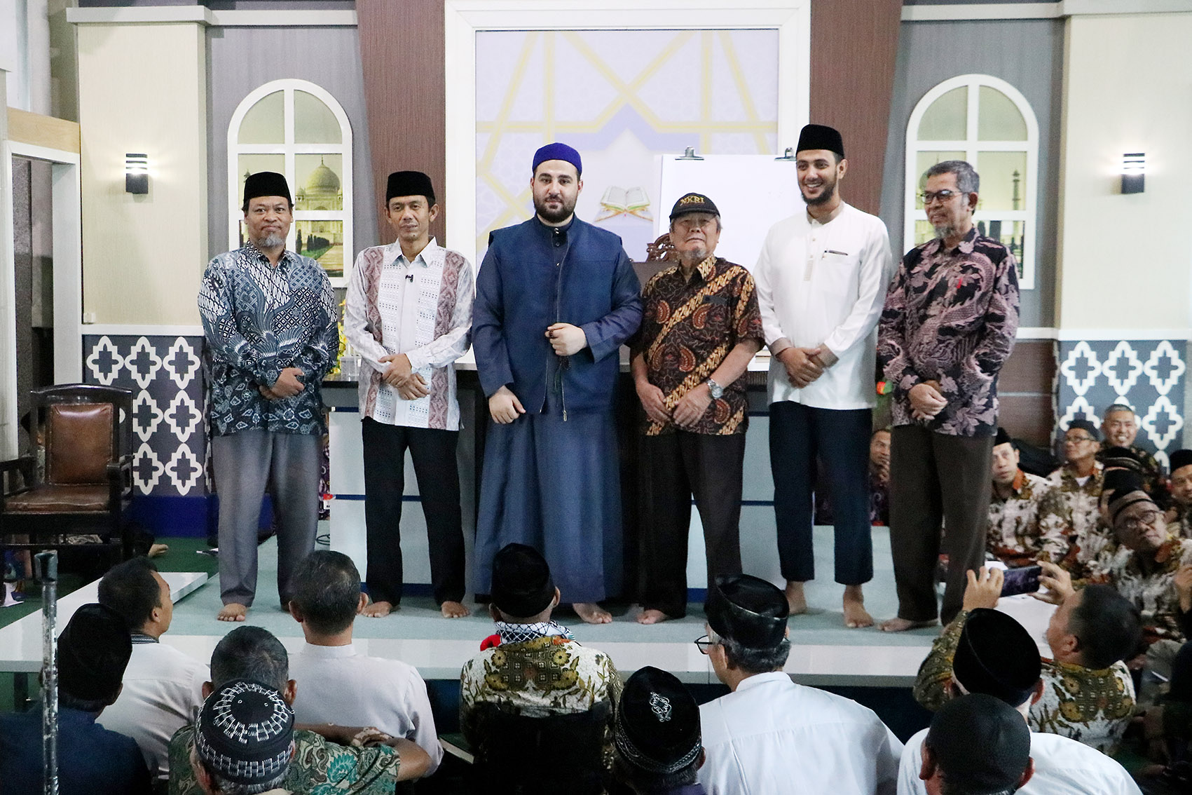 KOTA SOLO, JAWA TENGAH – Imam Masjid Na’ma Al-Ghofari, Jabalia, Gaza, Palestina, Syekh Anas Sa’id Muhammad Khader, menghadiri pengajian umum Ahad Pagi di Gedung MTA Pusat Surakarta, pada Ahad (16/3/2025). Kehadiran Syekh Anas didampingi Ustadz Faiz Baraja, seorang relawan Sahabat Al Aqsha selaku penerjemah.