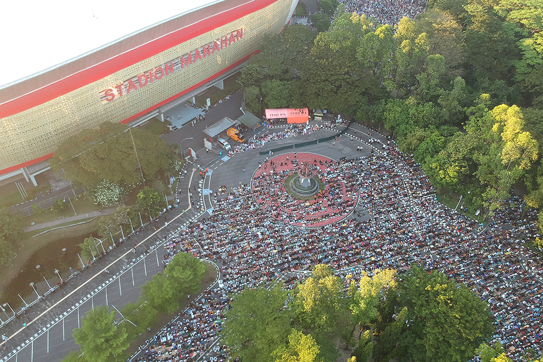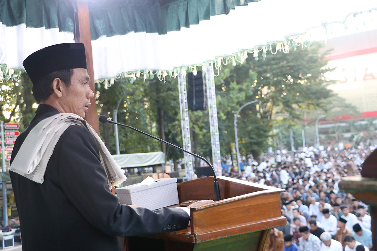 KOTA SOLO, JAWA TENGAH – Sedikitnya 40.000 jemaah menghadiri pelaksanaan salat Idul Adha 1446 Hijriyah di lapangan parkir Stadion Manahan, Kota Solo, Jawa Tengah, pada Jumat (6/6/2025) pagi. Dimulai lebih awal dibandingkan salat Idul Fitri, salat Idul Adha dilaksanakan sekitar pukul 06.00 WIB dengan imam dan khatib Pimpinan Pusat MTA, Al Ustadz Nur Kholid Syaifullah, Lc, M.Hum.