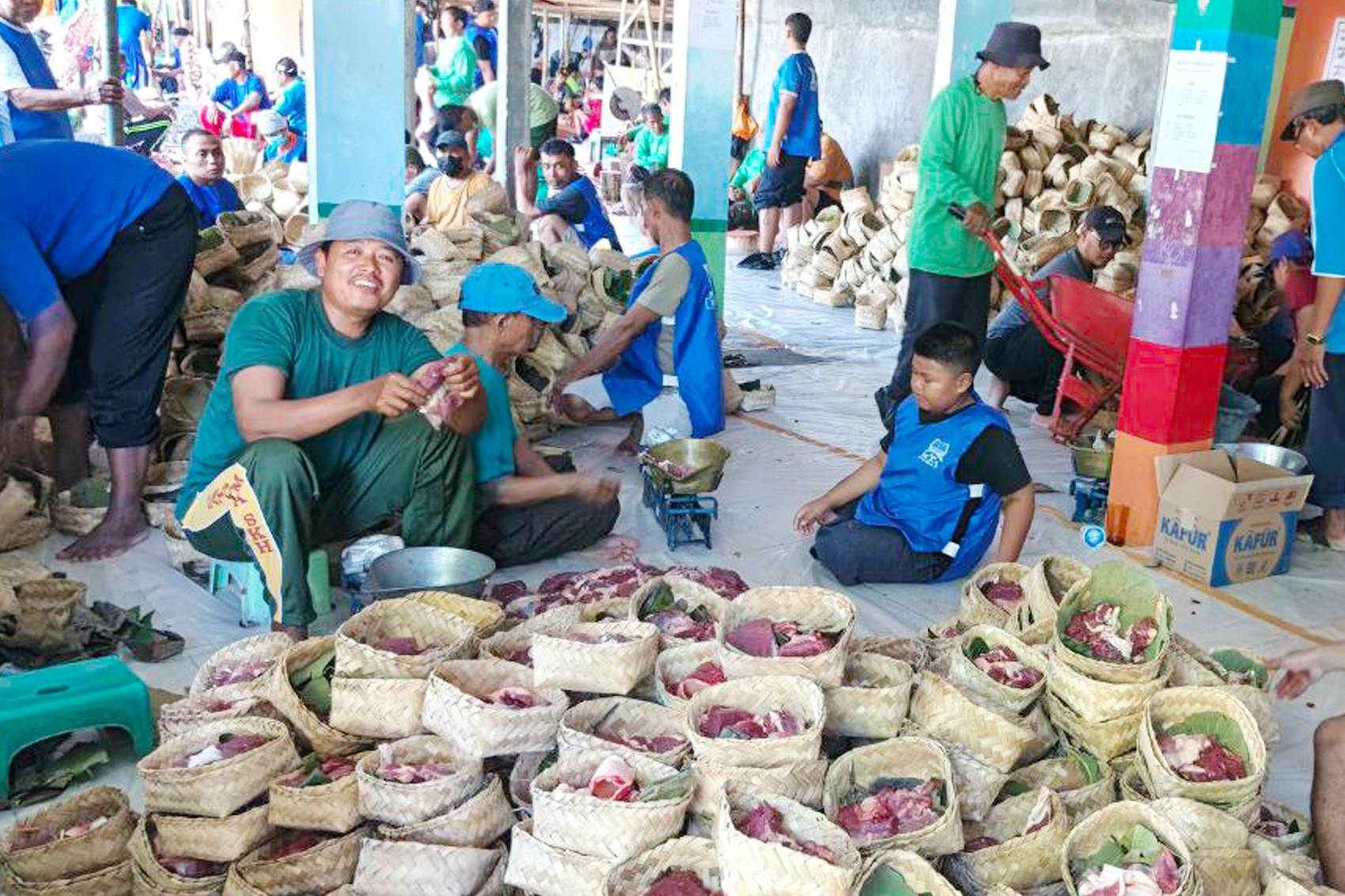 Dari hewan kurban yang disembelih, dikemas menjadi 735.542 paket daging sapi, dan 86.393 paket daging kambing. Daging dibagikan langsung kepada warga yang berhak menerima, tanpa harus menukar kupon maupun menimbulkan antrean.